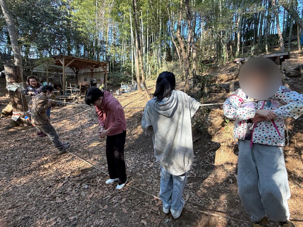 最初は外に行くことに乗り気じゃなかった生徒もだんだんと楽しくなったようで、楽しそうにハンモックやターザンロープなどで遊んでいました。